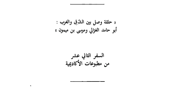 حلقة وصل بين الشرق و المغرب ابو حامد الغزالي و موسى بن ميمون